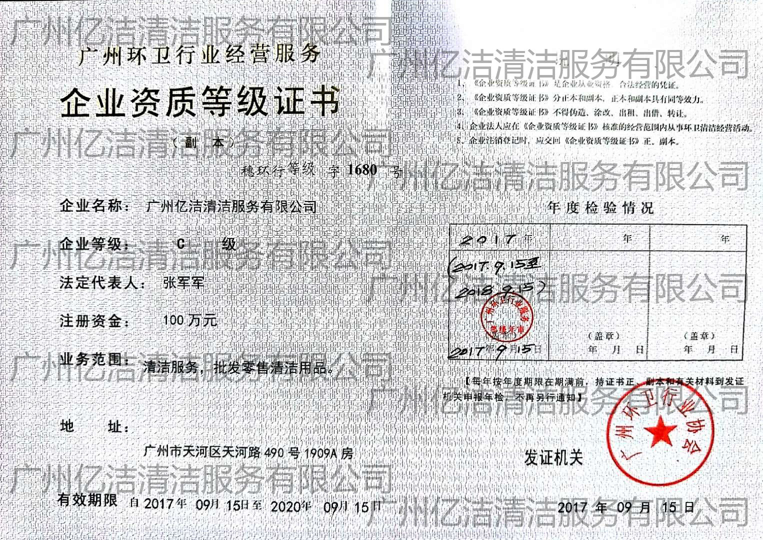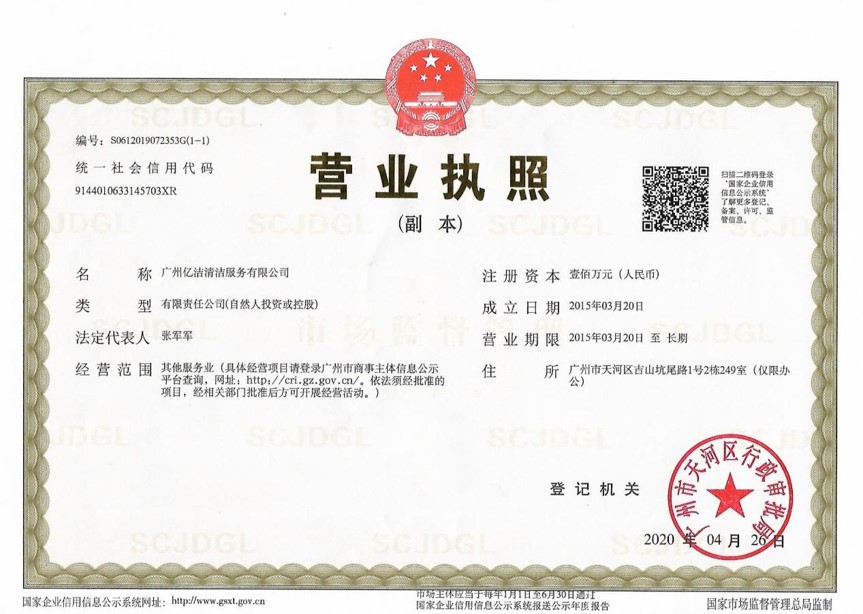 廣州億潔清潔服務(wù)有限公司是經(jīng)廣州市工商行政管理局批準(zhǔn)成立的(注冊資本:100萬元人民幣)。具有獨立法人資質(zhì)。公司成立2015年,公司具備完善的管理體系和高素質(zhì)管理隊伍,擁有特種技術(shù)人員33名,保潔服務(wù)人員上萬名,覆蓋廣州市,能及時調(diào)配并快速投入高效運行。我們的每個員工都經(jīng)過公司的嚴(yán)格篩選,嚴(yán)格培訓(xùn),定期培訓(xùn)后持證上崗以保證服務(wù)品質(zhì),保障客戶的權(quán)利,利益,形象等不受損失。 廣州億潔清潔公司是一家設(shè)備齊全,技術(shù)強大的綜合型清潔服務(wù)公司,為客戶提供完善服務(wù)尊定了堅定的基礎(chǔ)。 司于2010年全面推行了ISO9001質(zhì)量管理體系認(rèn)證和ISO14001國際環(huán)保體系認(rèn)證。先后獲得廣州高層建筑外墻清洗維修作業(yè)【安全資質(zhì)證書】、【廣州環(huán)衛(wèi)企業(yè)等級證書C級資質(zhì)】、廣州疾控中心頒發(fā)的【四害消殺服務(wù)資質(zhì)證】、【空氣治理A級資質(zhì)】、中國石材協(xié)會頒發(fā)的【石材資質(zhì)B級資質(zhì)】等。 廣州億潔清潔服務(wù)有限公司致力于打造專業(yè)、實惠、靠譜的保潔服務(wù)公司,把專業(yè)的事情交給專業(yè)的我們,您放心! 億潔清潔服務(wù)項目: 廣州保潔服務(wù):新建樓宇、別墅、酒店、醫(yī)院、辦公樓、賓館、企事業(yè)單位廠房竣工后開荒及裝修后精細(xì)保潔.工程保潔服務(wù)。 廣州物業(yè)托管:為廣州市各大企事業(yè)單位、賓館、政府機關(guān)、小區(qū)物業(yè)、酒店及廠房提供專業(yè)化保潔、園林、設(shè)施維護(hù)等管理服務(wù)。 廣州高空作業(yè):高空玻璃幕...[詳情]